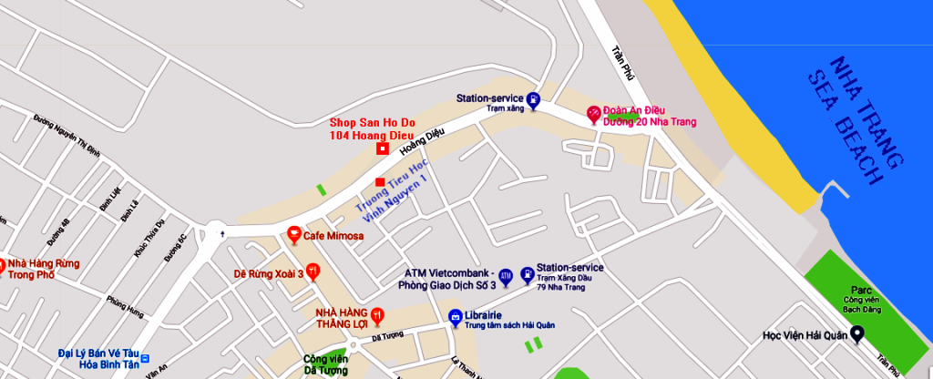 VỊ TRÍ CỬA HÀNG SAN HÔ ĐỎ TẠI 104 HOÀNG DIỆU TP NHA TRANG (Theo Google map)